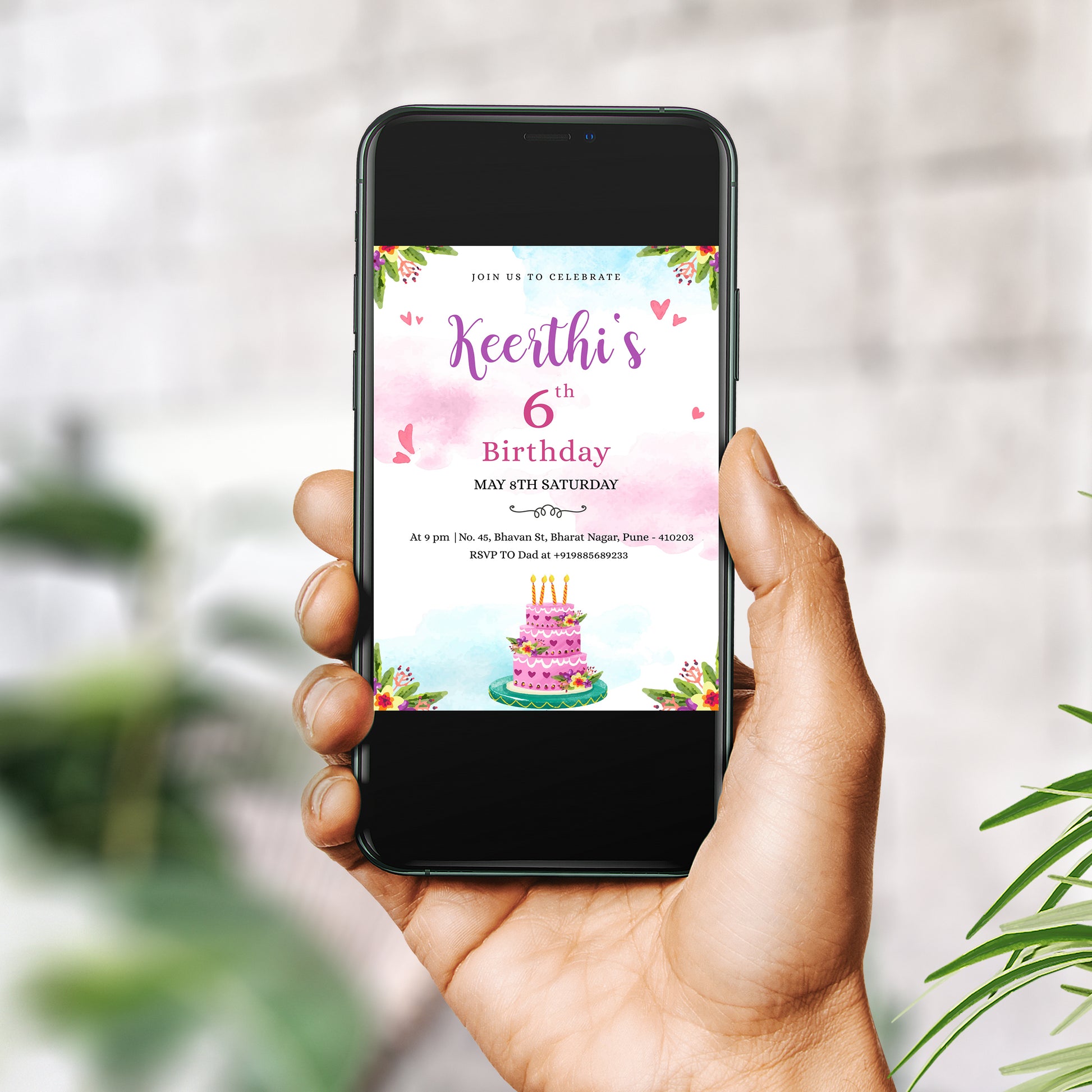 Cake Birthday Invitation, for girls, chocolate cake, insta cake, yummy, birthday cake, Evite, Digital Invite, FP0002