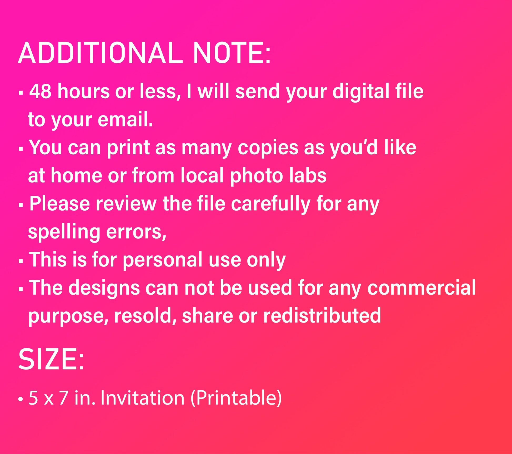 48 hours or less, I will send your digital file to your email.